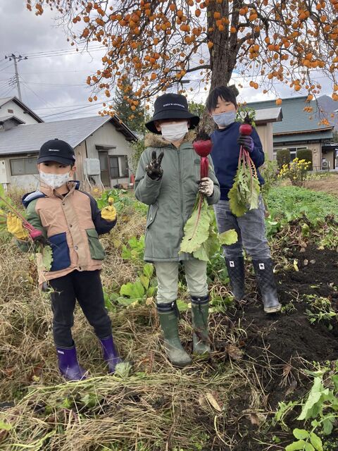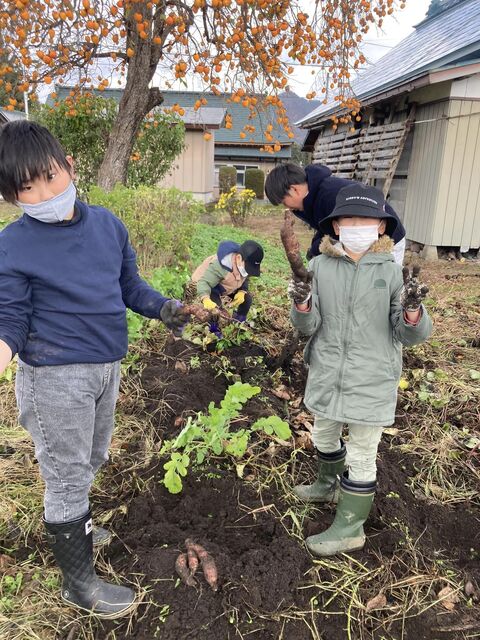 11月19日(土)は子ども自然体験で、サツマイモ、赤カブ、大豆の収穫を行いました。今年は、サツマイモ苗の植え付けが7月になってしまい、育っているか心配でしたが、まずまずの出来でした。