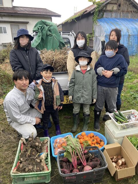 収穫した、サツマイモ、赤カブの他、里芋、柿、シイタケ等の野菜もお土産に持ち帰ってもらいました。